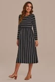 Black And White Long Sleeve Round Neck Stripe Midi Dress