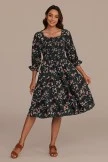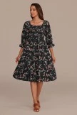 This gorgeous Black Floral Smocked Tiered Midi Dress is bound to turn heads! Features fully smocked bodice with stretch 3/4 length sleeves with elastic at cuff with ruffle detail,flowing, tiered skirt. For a chic everyday outfit, you can style it with some knee high boots, a wide brim hat, and gold jewelry to accentuate the look.