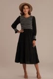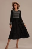 So pretty and femme, this maxi dress is featured in a longline tiered silhouette with oversized puff sleeves, keyhole back and embroidered stripes for the perfect, effortless look.
