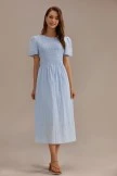 Blue Stripe Short Sleeve Round Neck Smocked Cotton Midi Dress