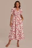 We are so in love with the gorgeous color and perfect modest fit of this dress! Features include a slight v neckline, short puff sleeves and a gorgeous flowy skirt. Get yours today!