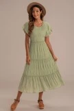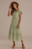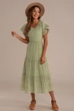 The modest dress is perfect from top to bottom! We adore the gorgeous pale sage green color, tiered skirt, high rounded neckline, and ruffled detailing on the skirt! This gorgeous dress is seriously perfect for spring, grab yours today!