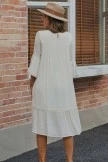 Ivory 3/4 Sleeve Round Neck Rayon Lace Midi Dress