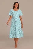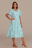 Light Blue Floral Short Sleeve Round Neck Tiered Midi Dress