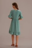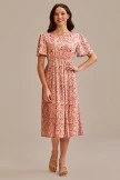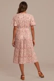 Light Pink Floral Short Ruffle Sleeve Round Neck Midi Dress