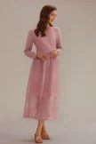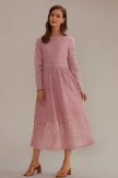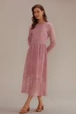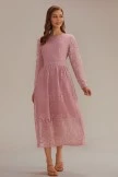 Pink Lace Long Sleeve Round Neck Tiered Midi Dress