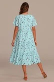 This teal dress has a unique print and can give people a bright feeling. It is very suitable for parties or vacations.The neckline is designed with a V neck, and this length makes you look very elegant.