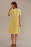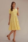 More gingham please! Perfect for sunny summer days, this knee-length dress will have you picnic ready in no time. It’s accentuated with plaid details, a tiered, ruffle skirt, and a bright yellow print.